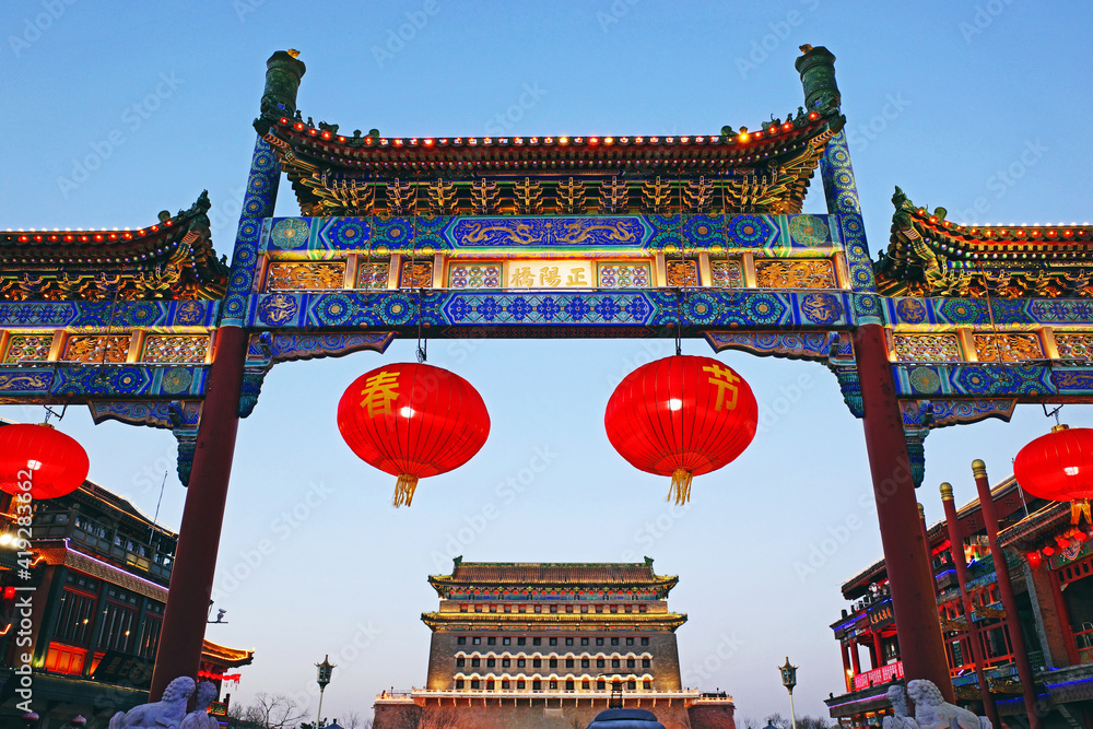 Fototapeta lantern festival in qianmen beijing city