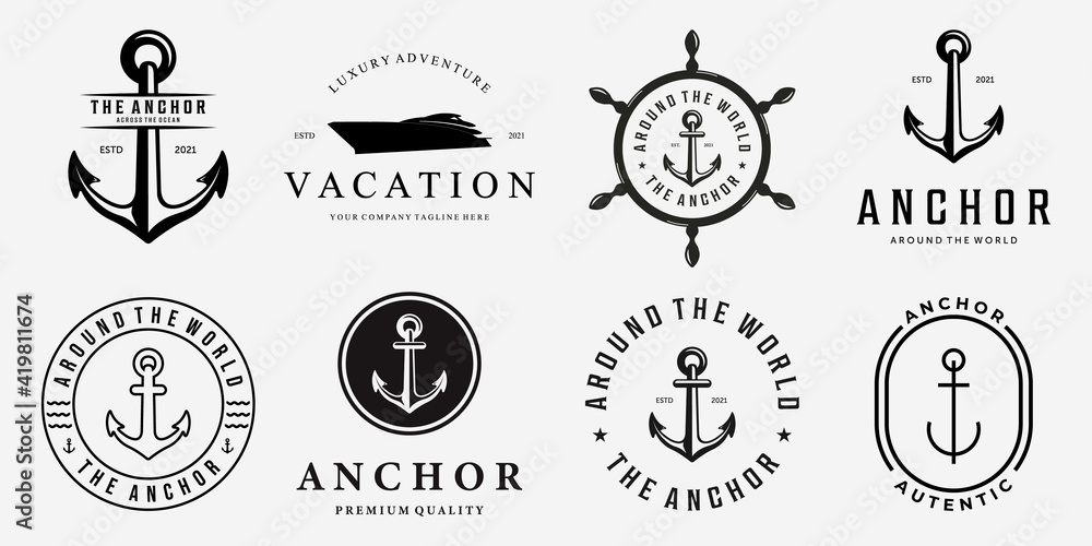 Fototapeta Set Bundle of Anchor Ship Yacht Luxury Badge Vector Logo, Illustration Vintage D