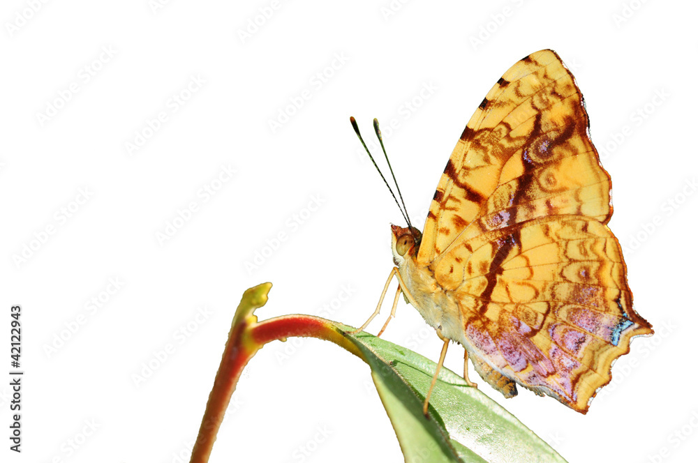 Fototapeta butterfly (common cunchinello) on leaf isolated on white