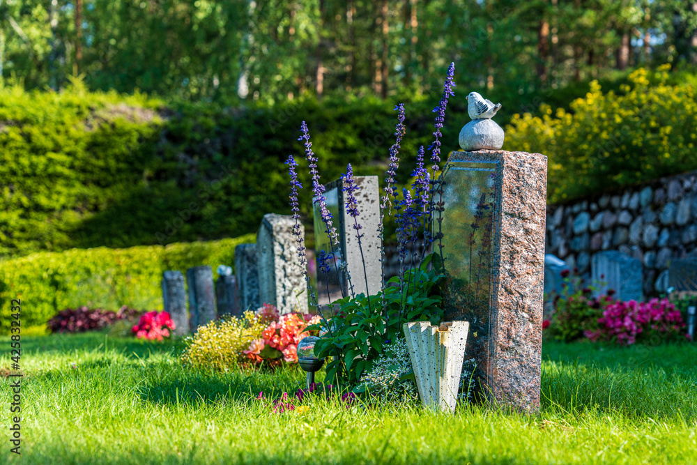 Fototapeta A row of gravestones at a well-cared cemetery in Sweden