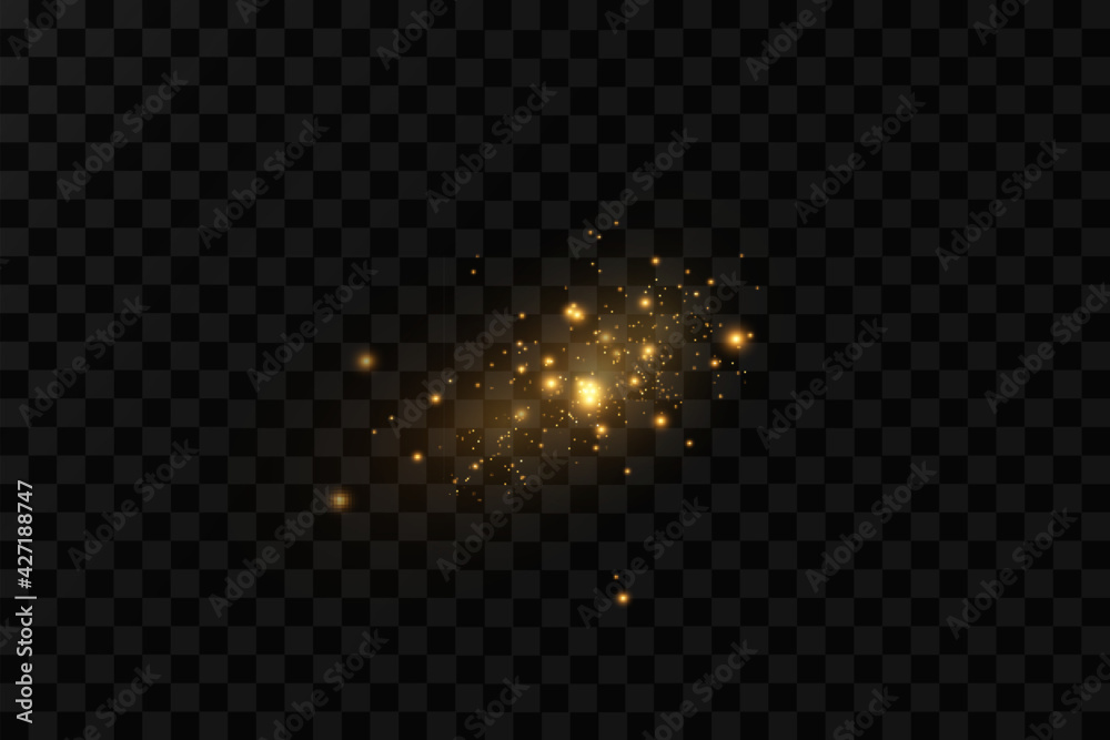 Fototapeta Christmas golden dust, yellow sparks and golden stars shine with a special light
