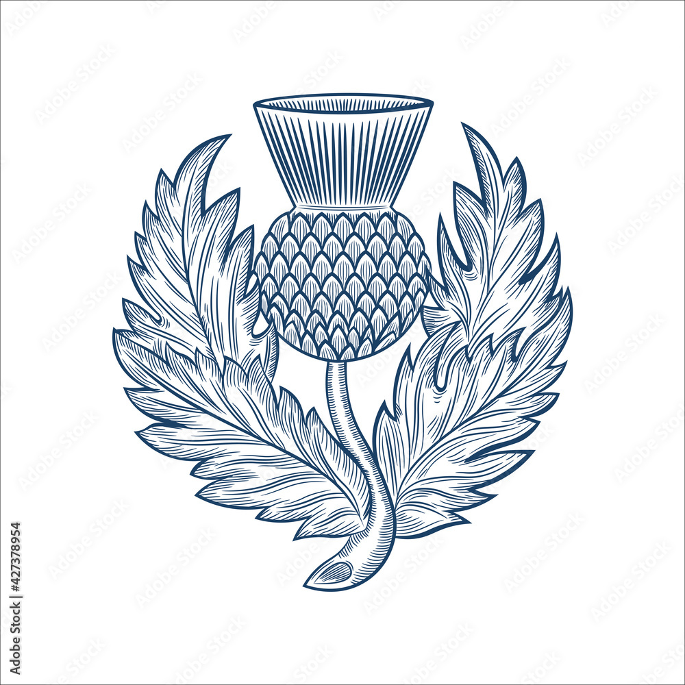 Fototapeta Scottish thistle emblem badge design vector illustration, in hand drawn style