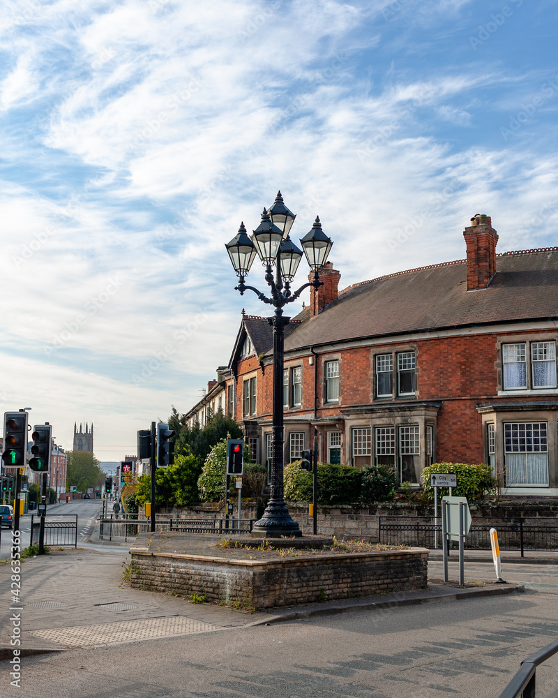 Fototapeta Derby, UK, April,18,2021: The Five Lamps Decorative Streetlamp in Derby City Centre