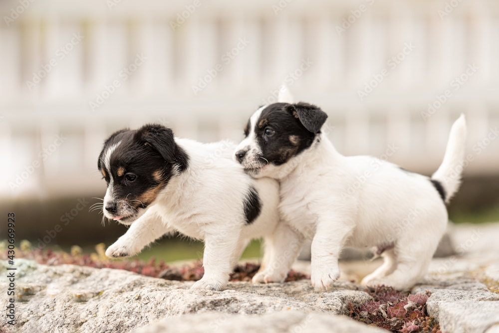Fototapeta Puppy 6 weeks old playing together