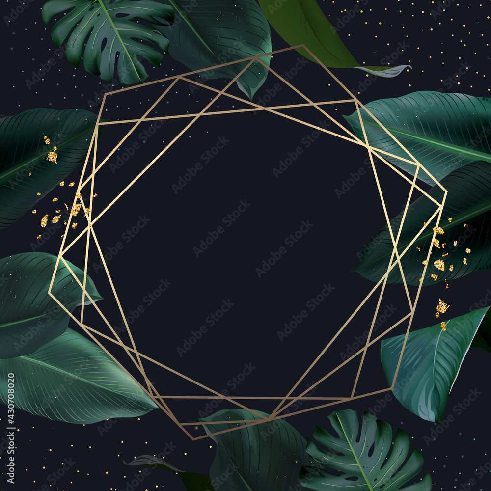 Fototapeta Tropical elegant frame arranged from exotic emerald leaves