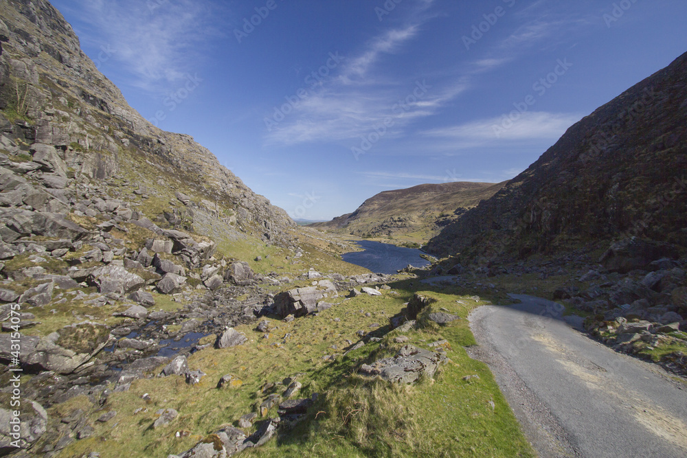 Fototapeta Mountain road leading into Gap of Dunloe vallery located in Kill