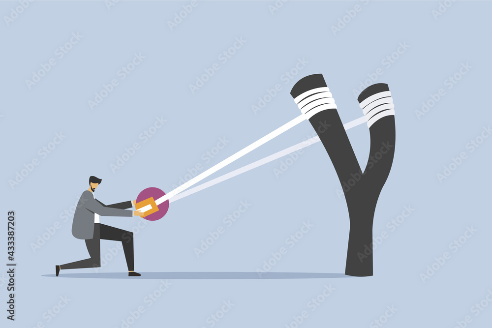 Fototapeta Illustration of a businessman aiming high with a big catapult