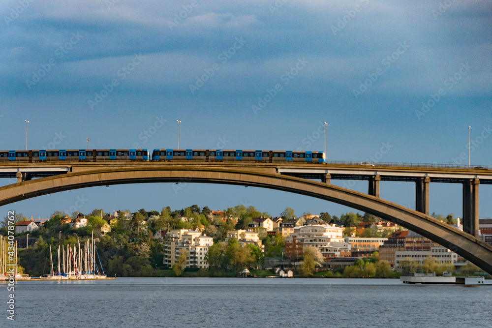 Fototapeta Stockholm, Sweden The subway crosses the Traneberg bridge