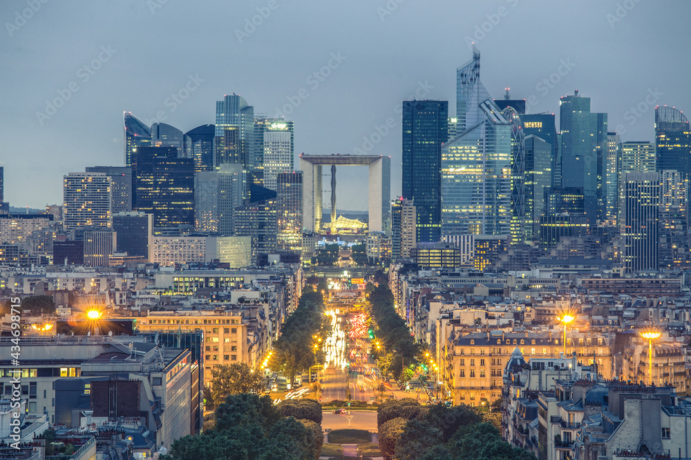 Fototapeta La Defence, Paris business district at dusk.