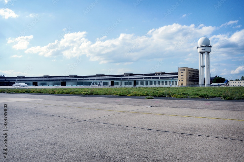 Fototapeta Nördliche Rollbahn des alten Tempelhofer Flughafens in Berlin mit Radarturm und
