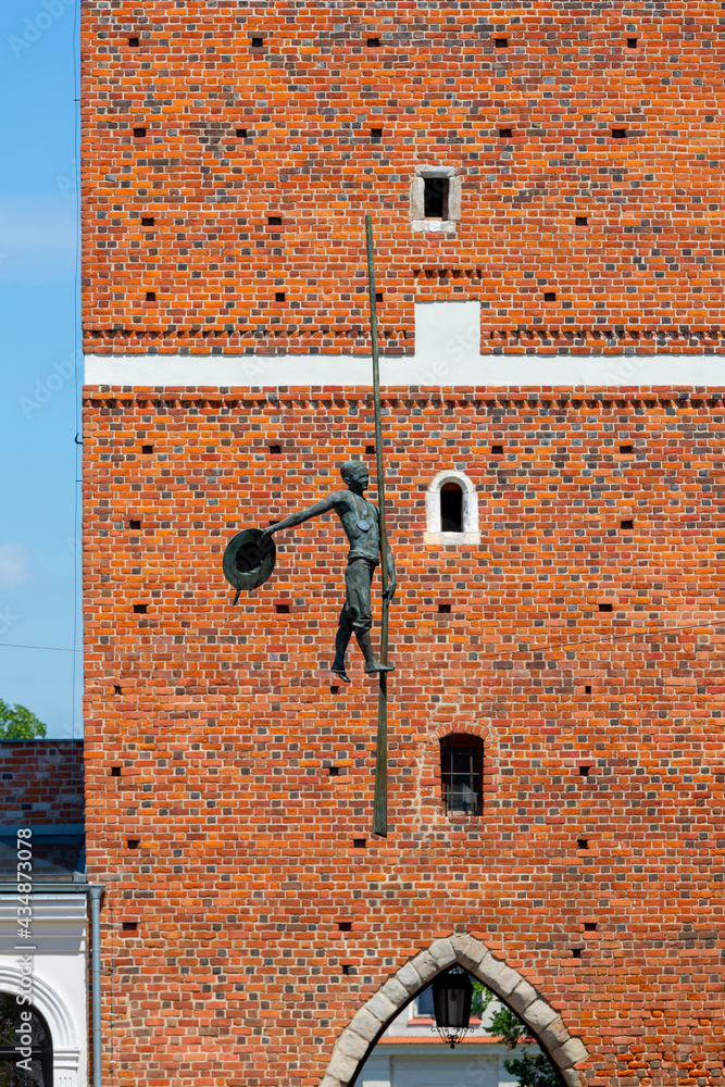 Fototapeta 14th century gothic entrance Opatowska Gate, sculpture of a bargeman going down