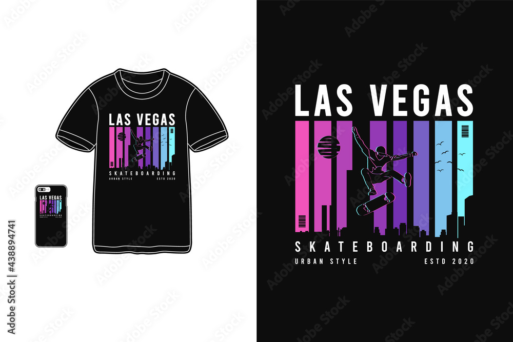 Fototapeta Las vegas skateboarding, t shirt design silhouette retro style
