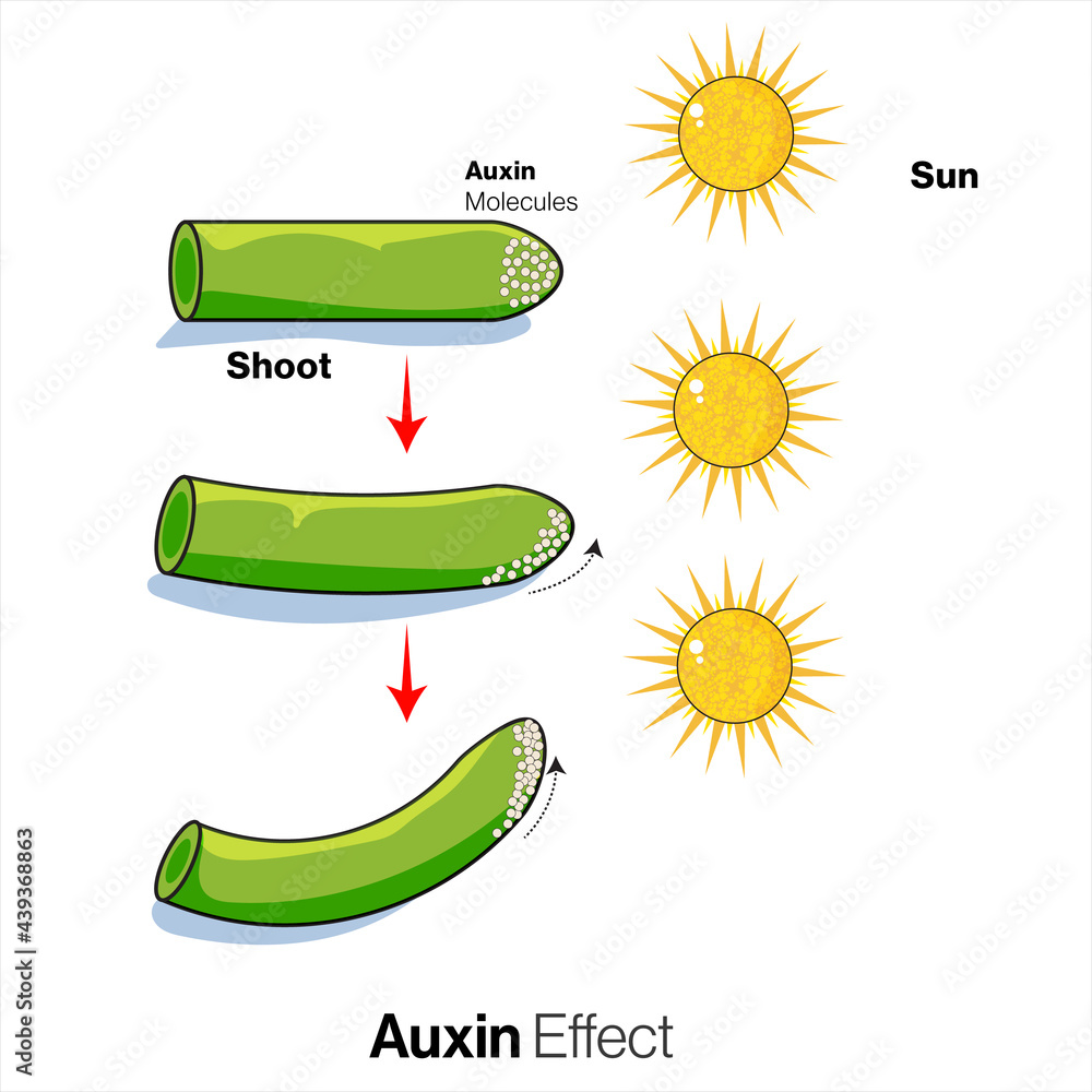 Fototapeta Plant hormone auxin effect, phototropism illustration.