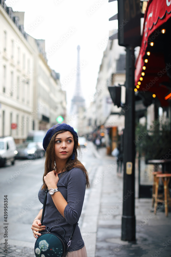 Fototapeta Beautiful girl walking in romantic paris