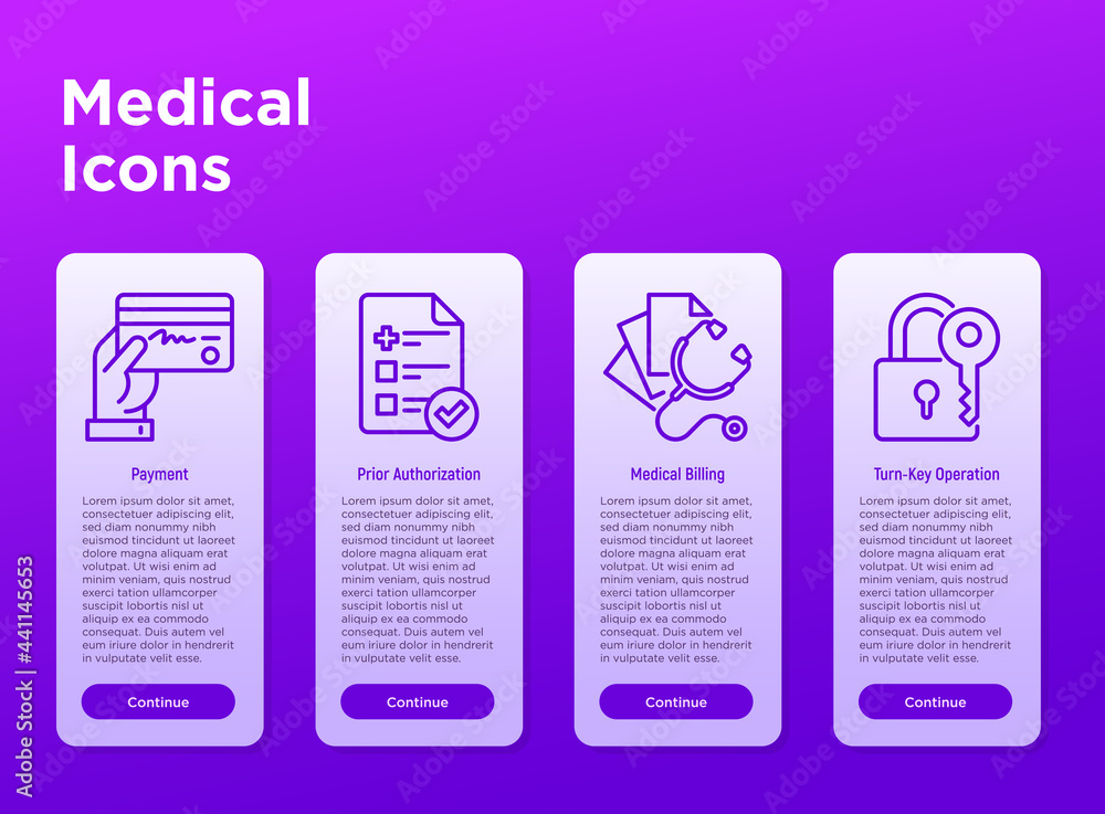 Fototapeta Medical thin line icons set: payment, prior autorization, medical billing, turn-key operation