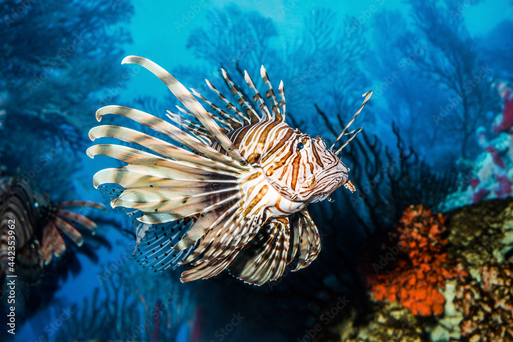 Fototapeta Exotic tropical Devil firefish, or common lionfish (Pterois miles), in Two Oceans Aquarium