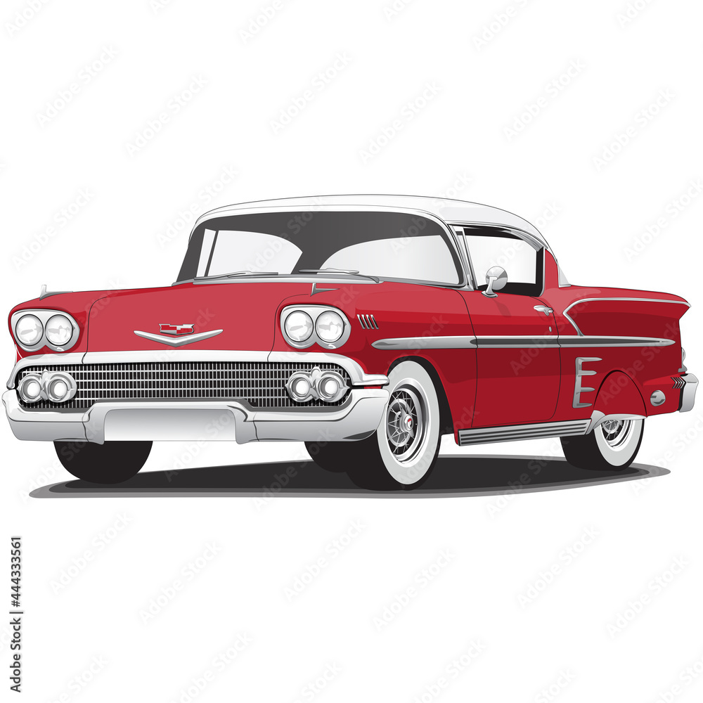 Fototapeta 1950's Red Vintage Classic Car Illustration