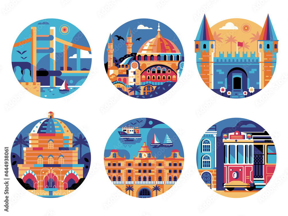 Fototapeta Istanbul Travel Landmarks Circle Icons Set