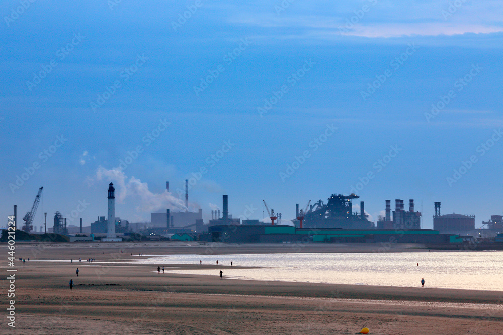 Fototapeta Industrial coastline at dusk near Dunkirk - France