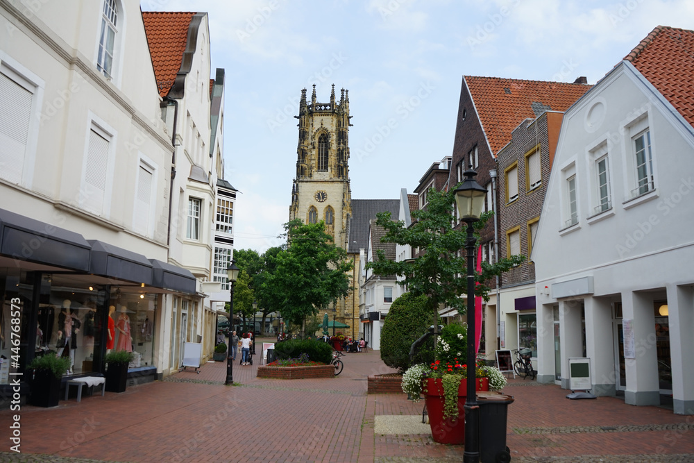 Fototapeta Oelde, Fußgängerzone in der Innenstadt mit Blick auf die markante St