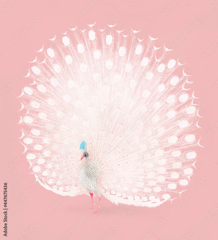 Fototapeta White peacock vintage wall art print poster design remix from original artwork by Ohara Koson