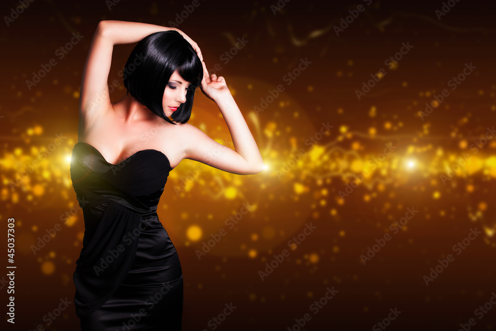 Fototapeta attraktive junge Frau vor Lichterhintergrund