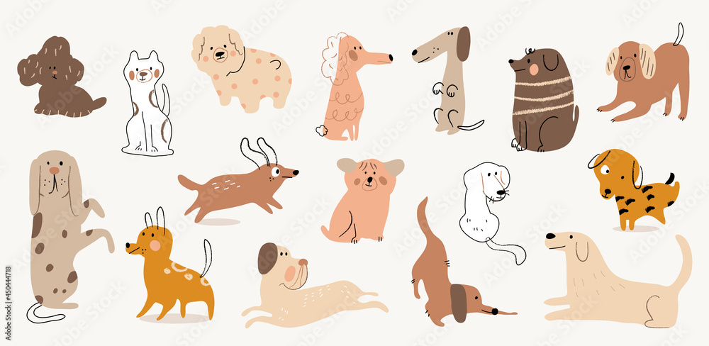 Fototapeta Cute dogs watercolor doodle vector set