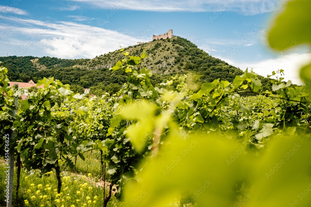 Fototapeta Vineyards, castle Devicky, Palava, Moravia region, Czech Republic