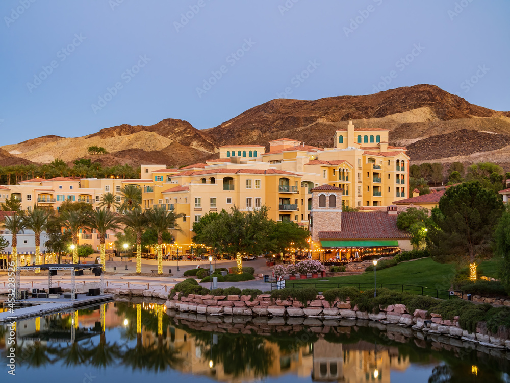 Fototapeta Night view of the lake landscape of Lake Las Vegas