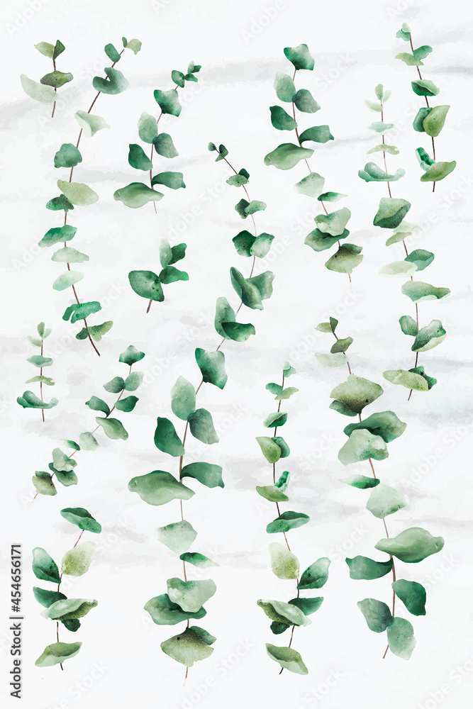 Fototapeta Hand-drawn eucalyptus leaves on white marble background