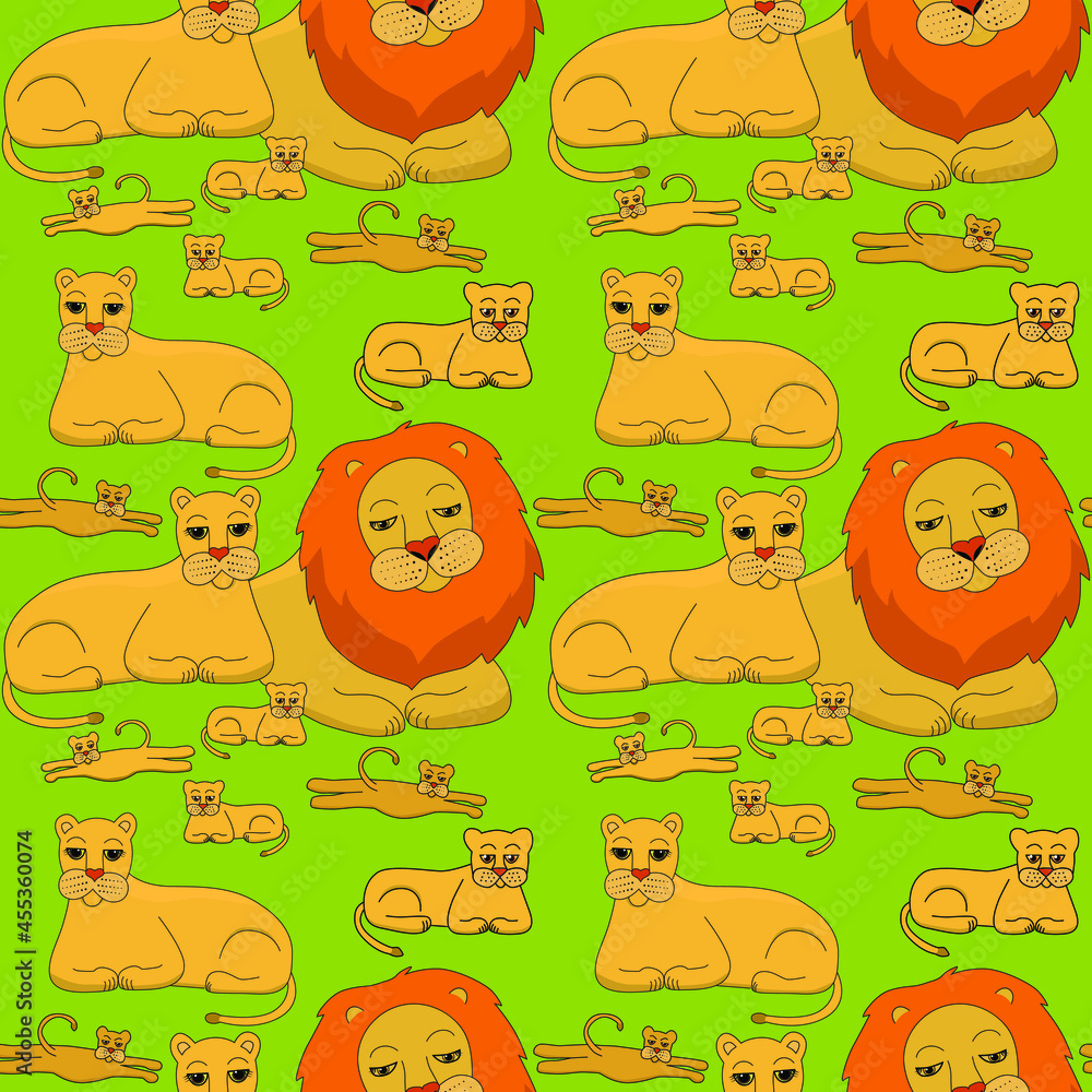 Fototapeta Illustration of a family of lions while on vacation