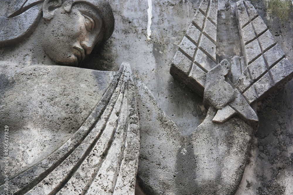 Fototapeta Close-up marble sculpture of giant man, realized Italian fascist age