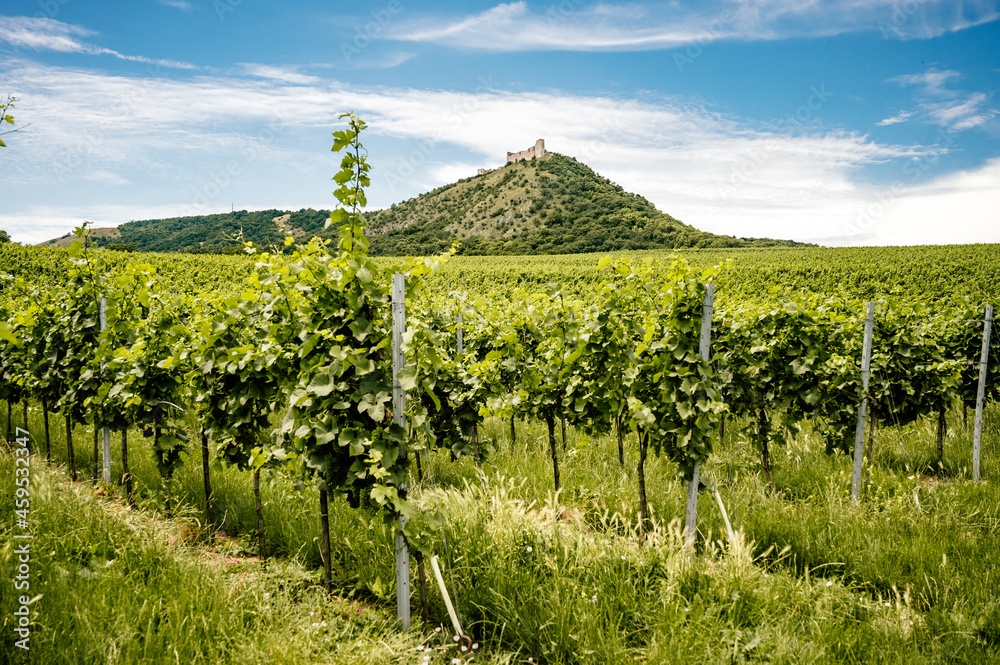 Fototapeta Vineyards, castle Devicky, Palava, Moravia region, Czech Republic