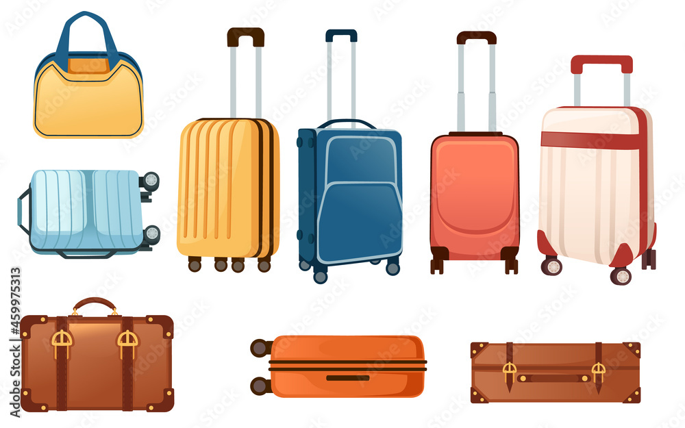 Fototapeta Set of different color luggage for travel suitcase for vacation and journey vect