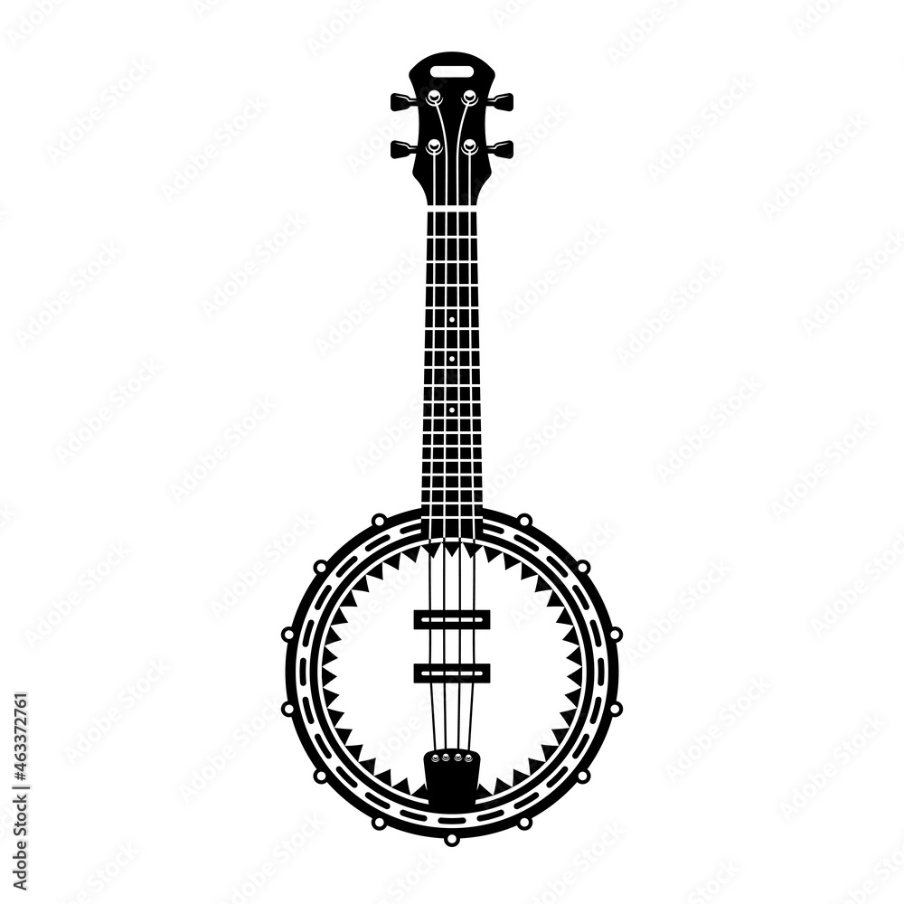 Fototapeta Banjo musical instrument in monochrome style isolated on white background vector