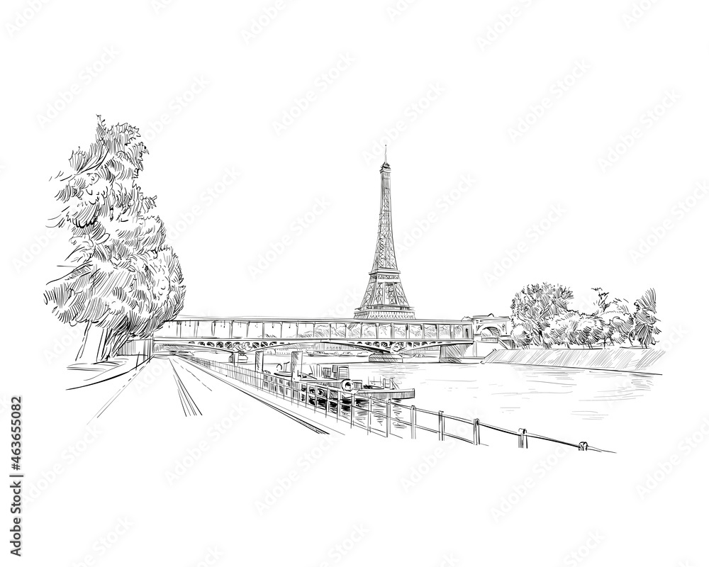 Fototapeta Romantic landscape view of the Eiffel Tower and Sena River