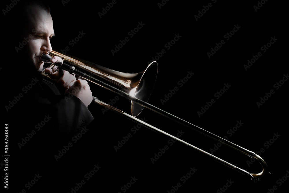 Fototapeta Trombone player. Trombonist playing jazz musician