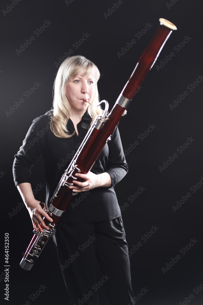 Fototapeta Bassoon woodwind instruments player. Classical musician