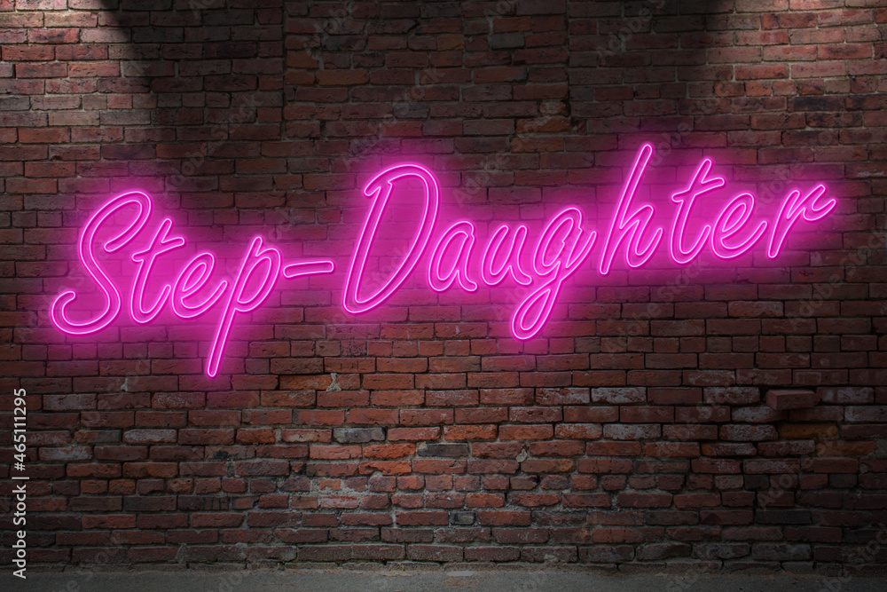 Fototapeta Neon Roleplay Step-Daughter Stepdaughter lettering on Brick Wall at night