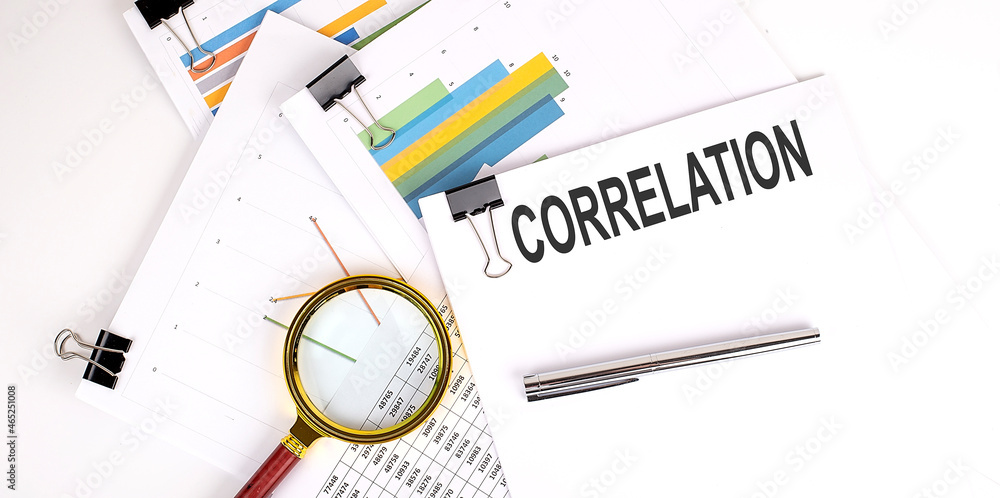 Fototapeta CORRELATION , text on white paper on the light background with charts paper