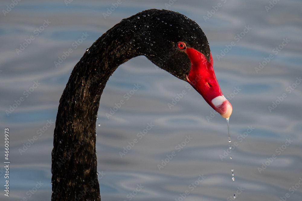 Fototapeta A black swan (Cygnus atratus) during an autumn day