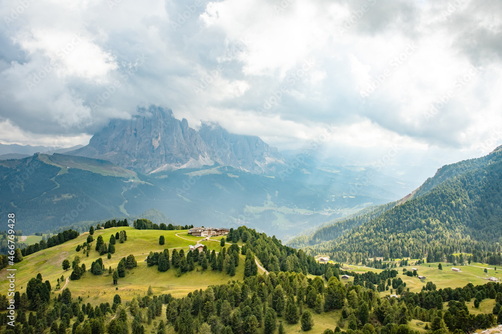 Fototapeta Summer landscape of mount Langkofel, South Tirol, Dolomites mountains, Italy