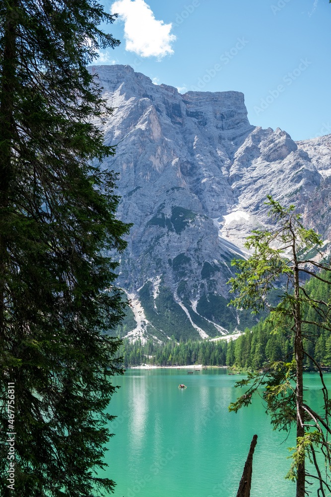 Fototapeta Lake Braies (also known as Pragser Wildsee or Lago di Braies) in Dolomites Mountains, Sudtirol, Italy