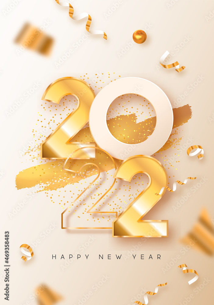 Fototapeta Happy New Year 2022 white gold 3d party card