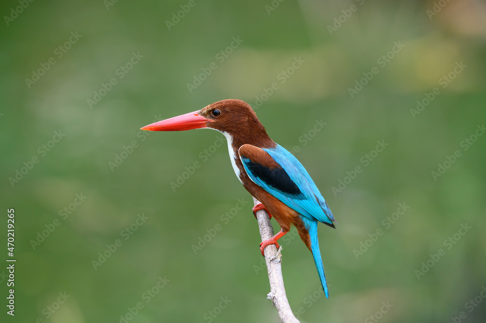 Fototapeta Closeup white-throated Kingfisher, A fish-eating bird with a large beak