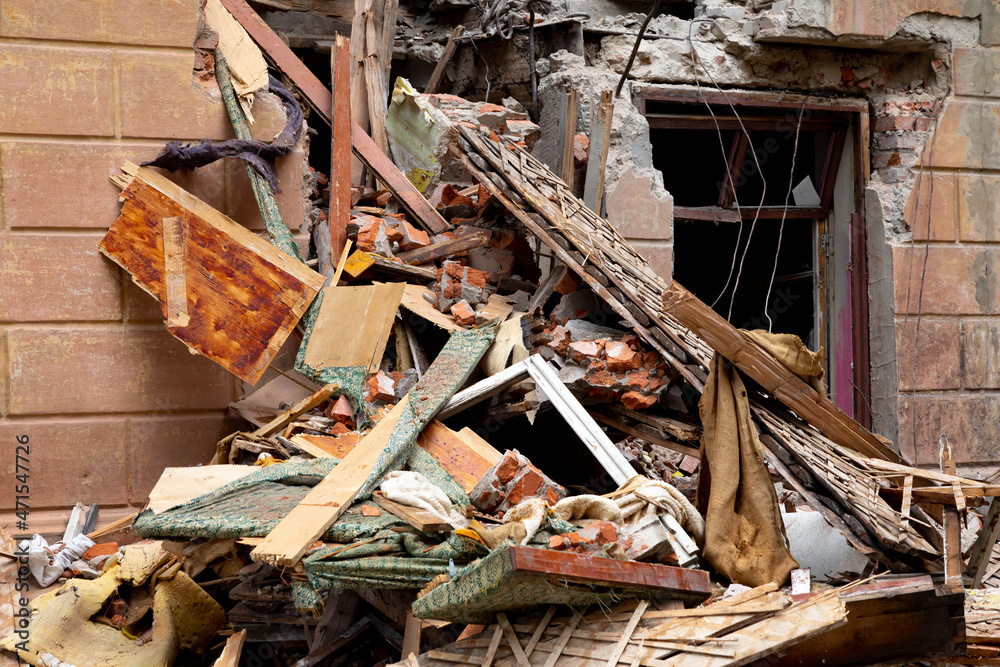 Fototapeta An old ruined brick house