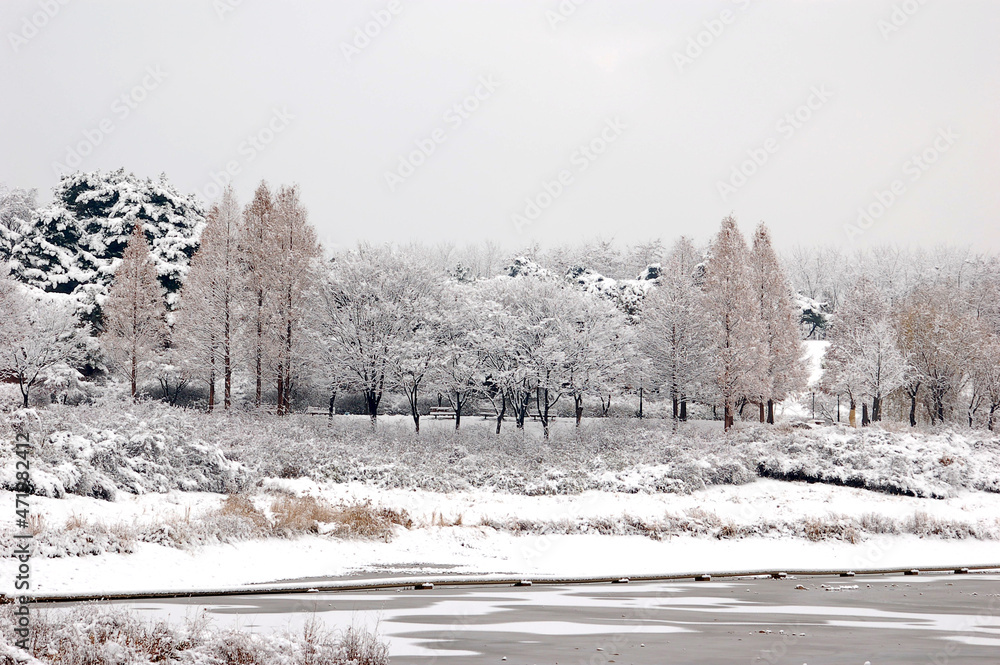 Fototapeta snowy landscape - Olympic Park, Seoul, Korea
