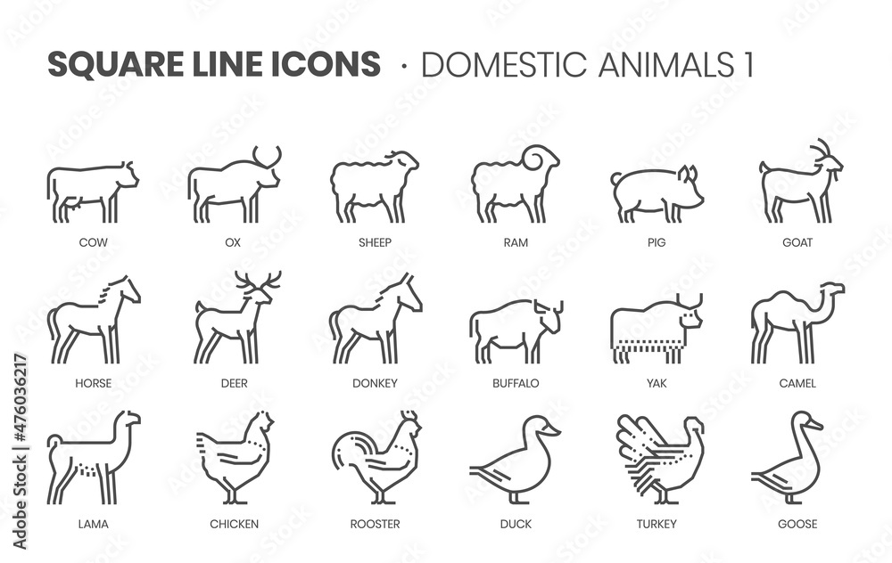 Fototapeta Domestic animals related, pixel perfect, editable stroke, up scalable square line vector icon set