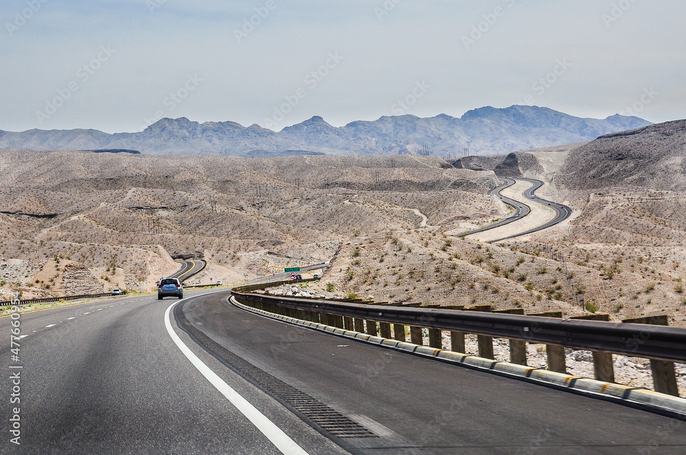Fototapeta Roads and highways that cross the rocky desert near Hoover Dam in Nevada