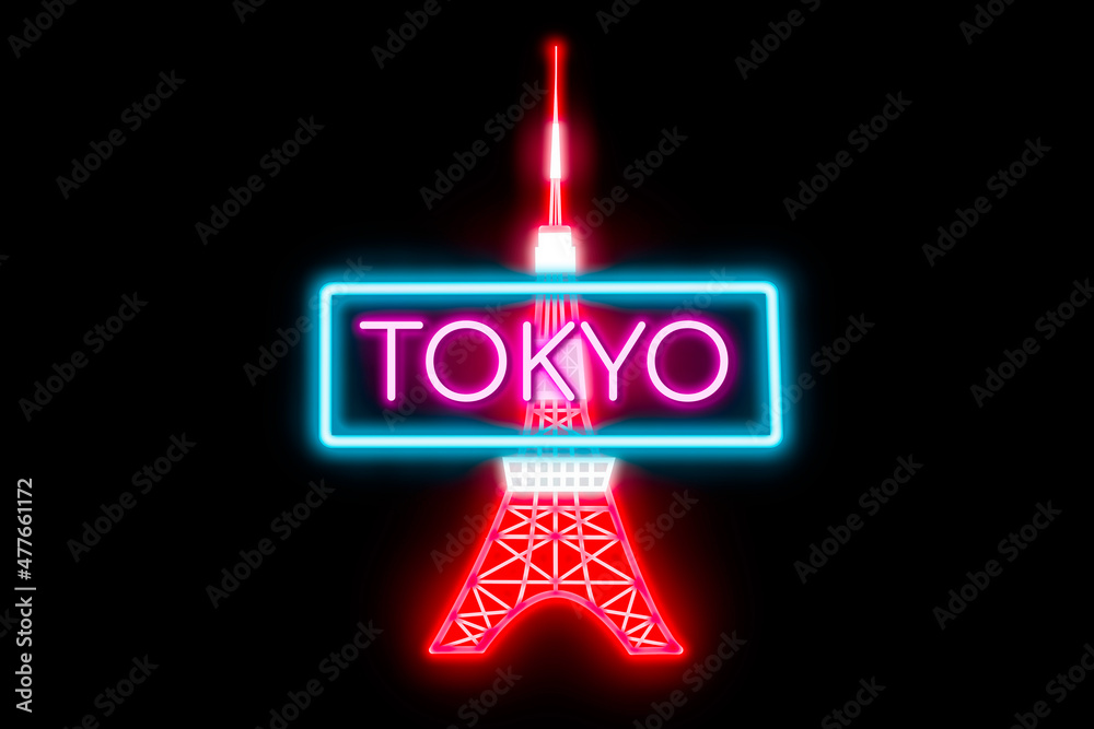 Fototapeta Tokyo neon banner with Tokyo tower light signboard.